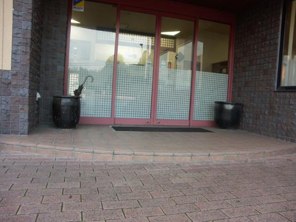 入口前に10センチ程度の段差があります。扉は自動ドアです。
