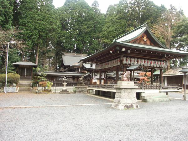 駐車場から神楽殿までの通路です。段差や階段も無く平坦ですが、砂利道なので注意が必要です。