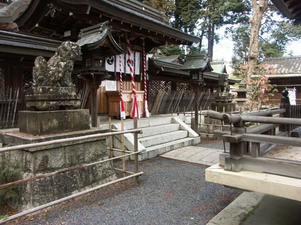 参道の右手に社務所があります。参道から20cm程の段差があります。