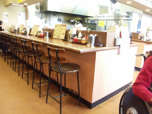 椅子が外せるので車椅子でも利用できますが、ハイカウンターなので車椅子の方には少し高いです。