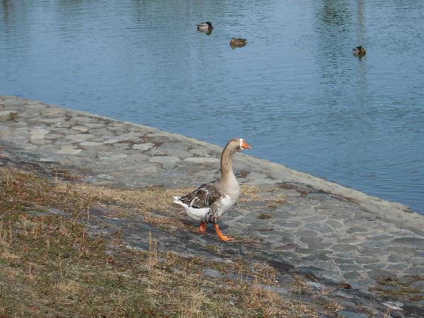 池には水鳥がいます。