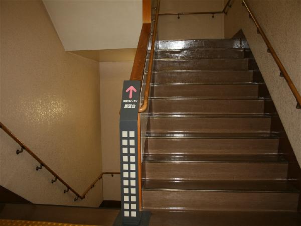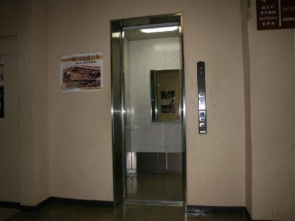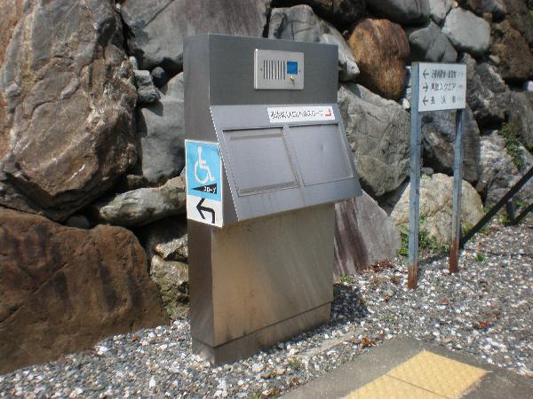 柱にあるインターホンで係員を呼び昇降機で受付まで上がれます。