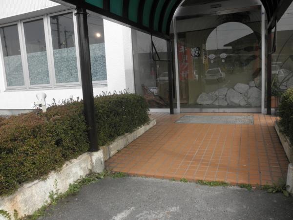 5センチほどの段差があります。電動車椅子では上り下りできました。自走ユーザの中には、介助が必要な方がいるかも知れません。扉は自動ドアです。