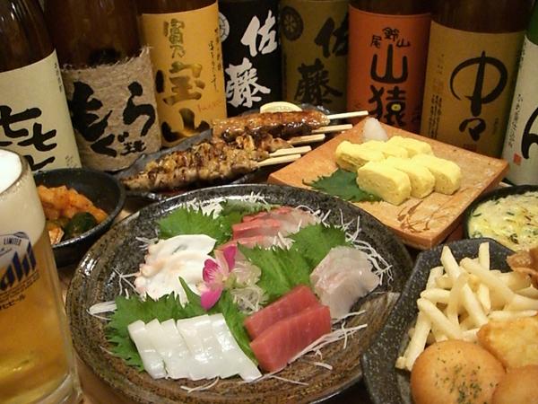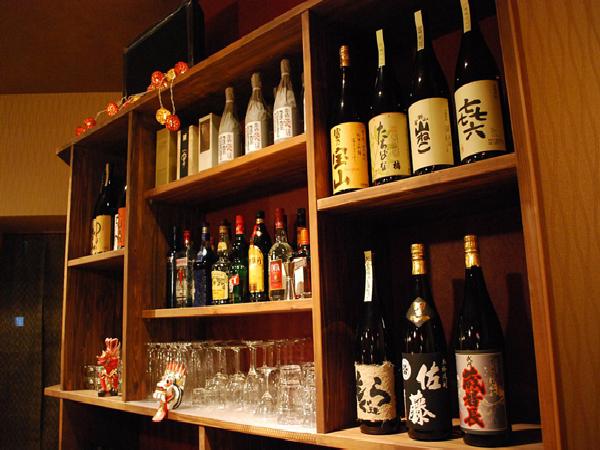 カウンターの前には、たくさんの日本酒や焼酎が並べてあります。