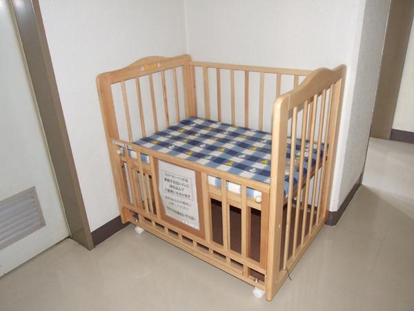 トイレの前には幼児用のベッドが置かれています。トイレの中に運び入れて使用することができます。もちろん使用後は、元の位置に置いてください。