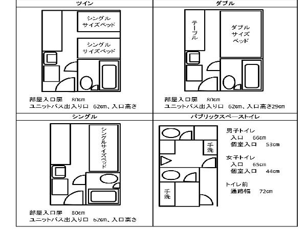 男子トイレ:入口 66cm 個室入口 53cm